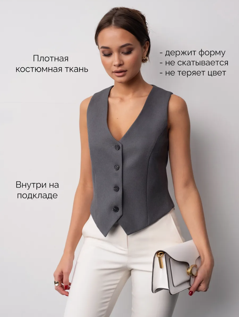 Продолжаем собирать наш деловой гардероб. Сегодня пройдёмся по жилетам! Почему в деловом гардеробе plus size обязательно должны быть жилеты? Жилет классический костюмный серый Деловая мода для женщин с формами часто воспринимается как нечто скучное и ограниченное. Но на самом деле, современные тенденции позволяют создавать стильные и элегантные образы даже в рамках строгого дресс-кода. И один из ключевых элементов, который я рекомендую включить в ваш деловой гардероб – это жилет. Жилет классический костюмный белый Жилет костюмный удлиненный черный Жилет создает четкий силуэт Жилеты отлично справляются с задачей создания структуры и подчеркивания линий фигуры. В отличие от пиджаков, они лучше сидят на фигуре, акцентируя внимание на талии и груди. Это особенно важно для тех, кто хочет визуально удлинить торс и создать гармоничную пропорцию между верхней и нижней частью тела. Женский жилет костюмный классический бежевый Многофункциональность Жилет может стать универсальным элементом вашег