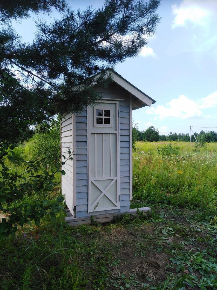 Перво-наперво, на участке надо было решить вопрос с так называемыми "естественными потребностями" человека, ибо приезд на замеры и покос всяко длится несколько часов, плюс время в пути. Туалет типа "сортир" — это самое главное ПЕРВОЕ строение на любом участке у цивилизованных воспитанных людей))). К тому же в нём уже можно было бы оставлять некоторый инструмент и инвентарь, чтобы не возить его в машине.