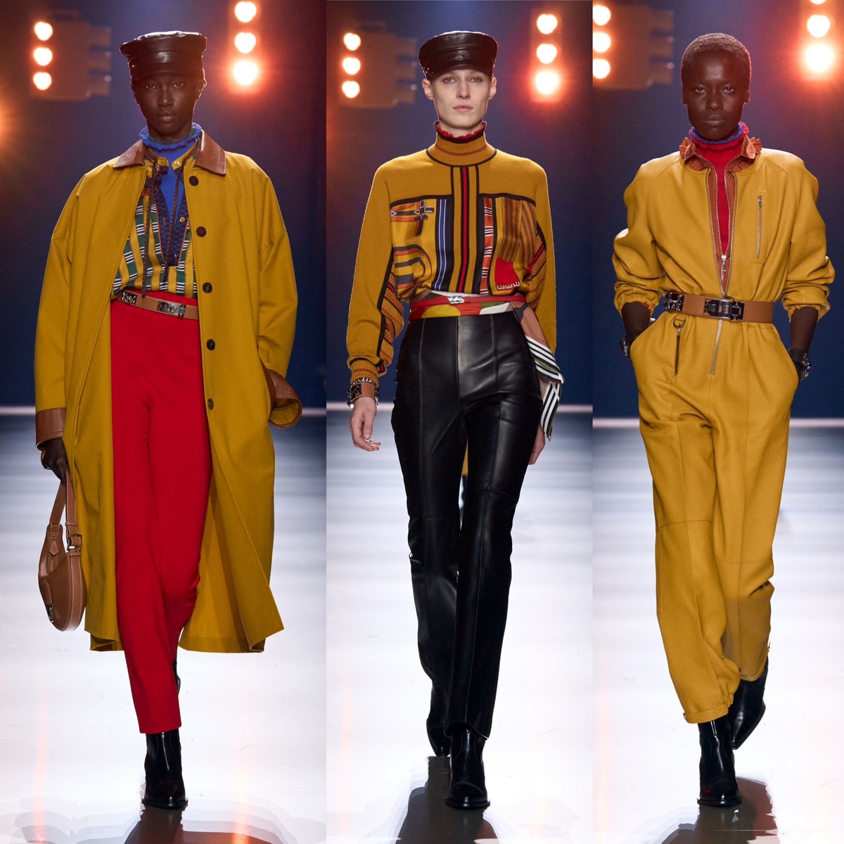 Коллекция Hermes Resort 2025 - это смысловое продолжение осенней коллекции. Показ прошёл в Нью-Йорке, тем самым Надеж Ване-Цыбульски хотела показать, что стиль француженок и американок очень похож, а их тонкие различия гармонично дополняют друг друга. Коллекция размыла границы между культовым французским стилем и американским духом. Укороченные кожаные брюки с высокой талией прекрасно уживаются с ковбойскими сапогами, что выглядит элегантного и чувственно в то же время. Просторные комбинезоны создавали сдержанные, комфортные образы, дополненные шарфами Hermès, выглядывающими из-под воротников. Кожа, являющаяся визитной карточкой Hermes, нашла своё место в облегающих брюках и свободных комбинезонах, юбках и тренчах, куртках и аксессуарах. Верхняя одежда была сильной стороной этой коллекции, пальто и полупальто из овчины, укороченные варианты насыщенных синего, красного и коричневого цветов. Палитра очень богатая и сочная. Надеж Ване-Цыбульски старалась придерживаться кодов