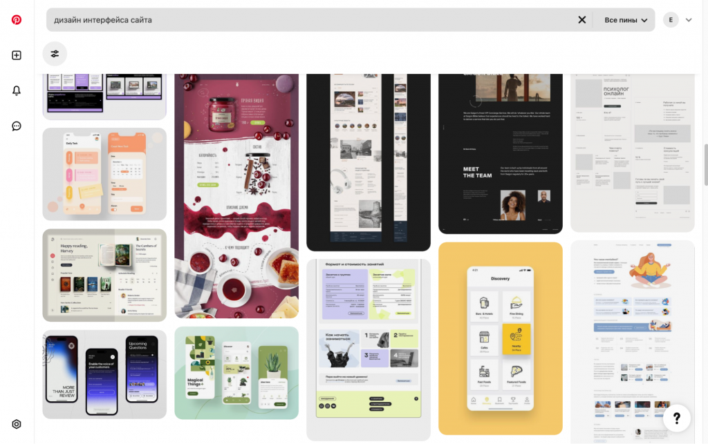 Собирайте свою коллекцию материалов, которые вас вдохновили: картинки, надписи, шрифты, фотографии, видео. Одно из самых удобных приложений для этого — Pinterest. Регулярно просматривайте свою коллекцию: она поможет в развитии умения анализировать визуал и позволит быстро находить референсы для работы. Когда вам нужно будет срочно сделать дизайн, сможете опереться на них и уделите время креативу.