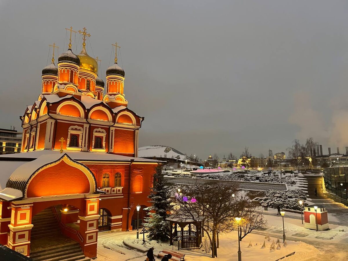 Бежим. Срочно. Вызвали такси — и вот мы уже едем. Прошу как можно быстрее таксиста, ведь пульс точно зашкаливает. Как его датчики на приборной панели. И вот. Она вдалеке. Я вылетаю из такси у Парящего моста. Телефон выпадает в снег. Дурацкий айфон опять вырубается на морозе. Трясущемуся руками я его включаю и оживляю своим горячим дыханием. Вот ради чего. Фото не передаёт атмосферы. Я прикрепляю, но это чудо. Думаю, Москва зимой — восьмое чудо Света, ни больше ни меньше. Я знаю точно. Я так чувствую. Патриотично.