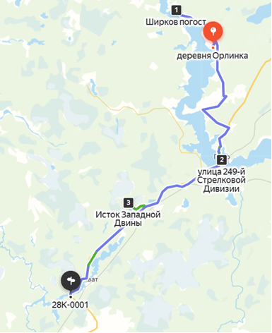 Орлинка – Ширков Погост – Заёво – Пено – Исток Западной Двины – поворот на Бдынь – ночевка у озера Охват