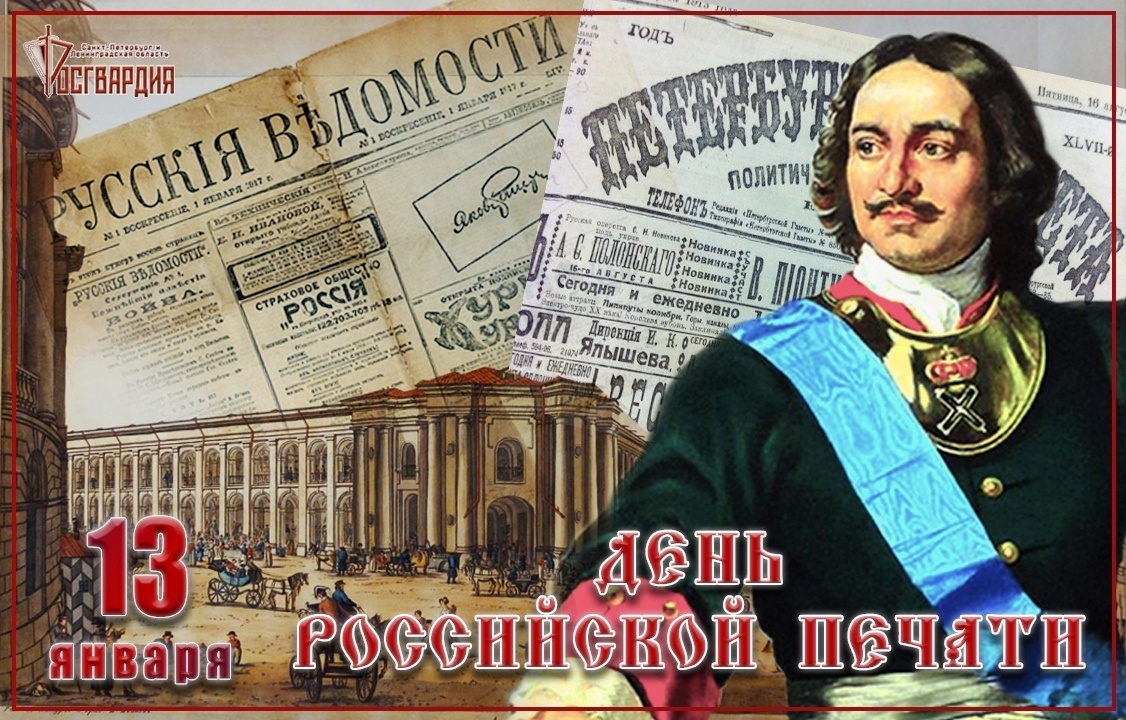 Сегодня в нашей стране отмечается День российской печати — профессиональный праздник, объединяющий не только работников периодических печатных изданий, но представителей всех средств массовой информации. Этот день был учреждён постановлением Президиума Верховного совета Российской Федерации от 28 декабря 1991 г. и связан с исторической датой – по особому указу императора Петра Первого, 2 января 1703 года (13 января по новому стилю) в Москве вышел первый номер печатной газеты под названием: «Ведомости о военных и иных делах, достойных знания и памяти, случившихся в Московском Государстве и во иных окрестных странах», впоследствии переименованной в «Санкт-Петербургские ведомости». Позднее, в 1711 году, её выпуск также был налажен в типографии, возведённой возле Троицкой площади в Санкт-Петербурге. Пётр Первый рассматривал печать как важное средство борьбы за проведение реформ и утверждение могущества Российского государства. Газета рассказывала о важных событиях городской жизни: строител