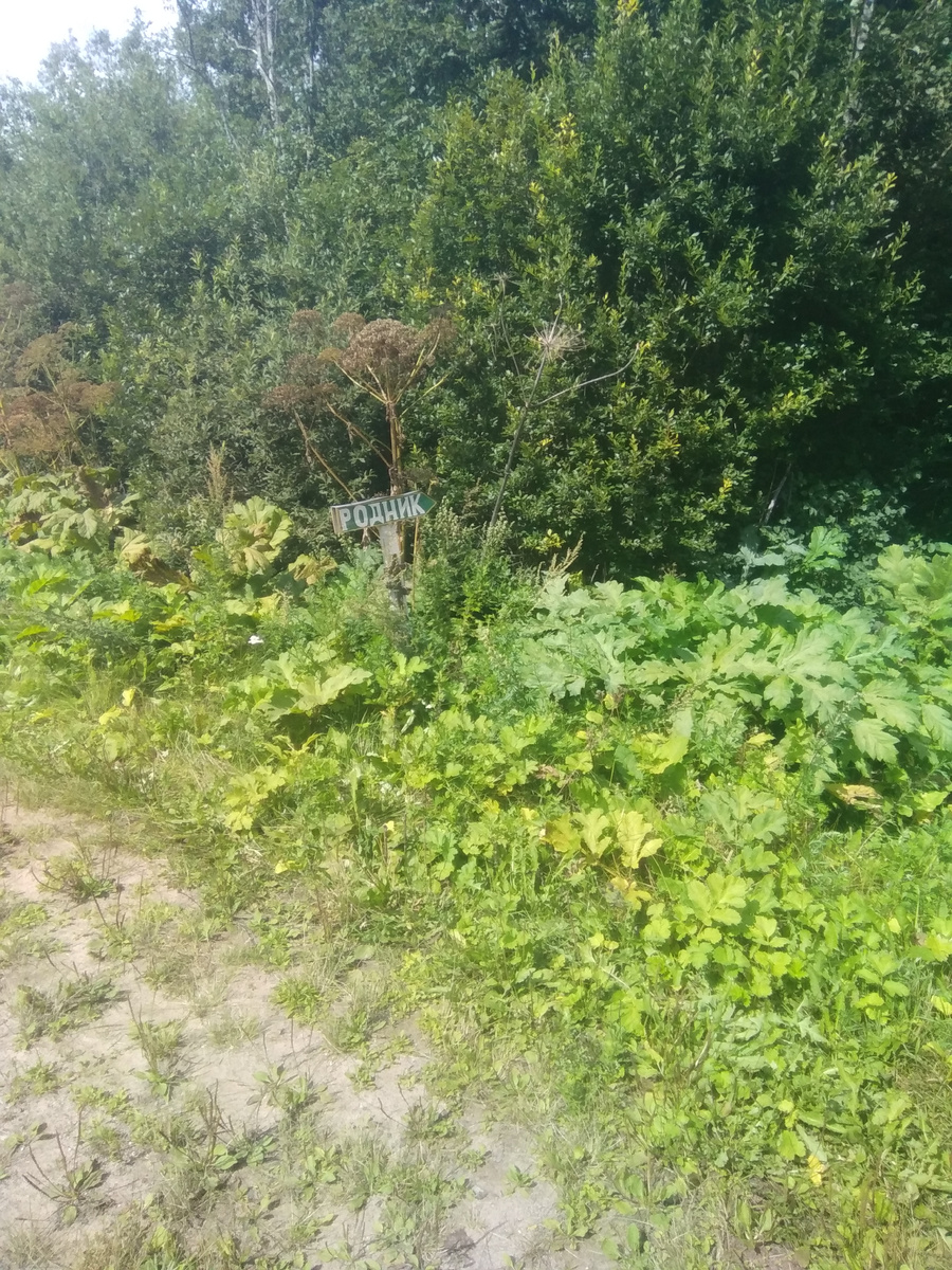 Люболяды – Оредеж. Воскресенье. 67 км https://yandex.ru/maps/-/CHqjJWMZ Предыдущий день: Когда поутру сворачиваю палатку, обнаруживаю, что поставила ее на грибы. Все кладбище поросло очень хорошими маслятами. Обидно! Грибы, конечно, отлепляю от дна, но навести какую-то особую красоту уже не стремлюсь: дома закончу. В деревне Вольная Горка поворачиваю на Оредеж, а потом – еще раз налево, в сторону поселка Тесовский. По пути проезжаю мимо руин церкви в урочище Каменные поляны. Борщевика-то сколько! Все затянуто! Даже вокруг не обойти. На спуске с горушки после поселка Тёсово-4, немного не доезжая до поворота на деревню Холомцы, справа от дороги, неожиданно вижу указатель «Родник». Очень приятно увидеть эту примечательность. Не знала о существовании здесь святого источника! Дорожка с широкими колеями проложена через борщевик. Открытый сруб – колодчик, в него падают листья и прочий мусор с деревьев – но специально рядом с источником повешена штуковина, похожая на теннисную ракетку. На «