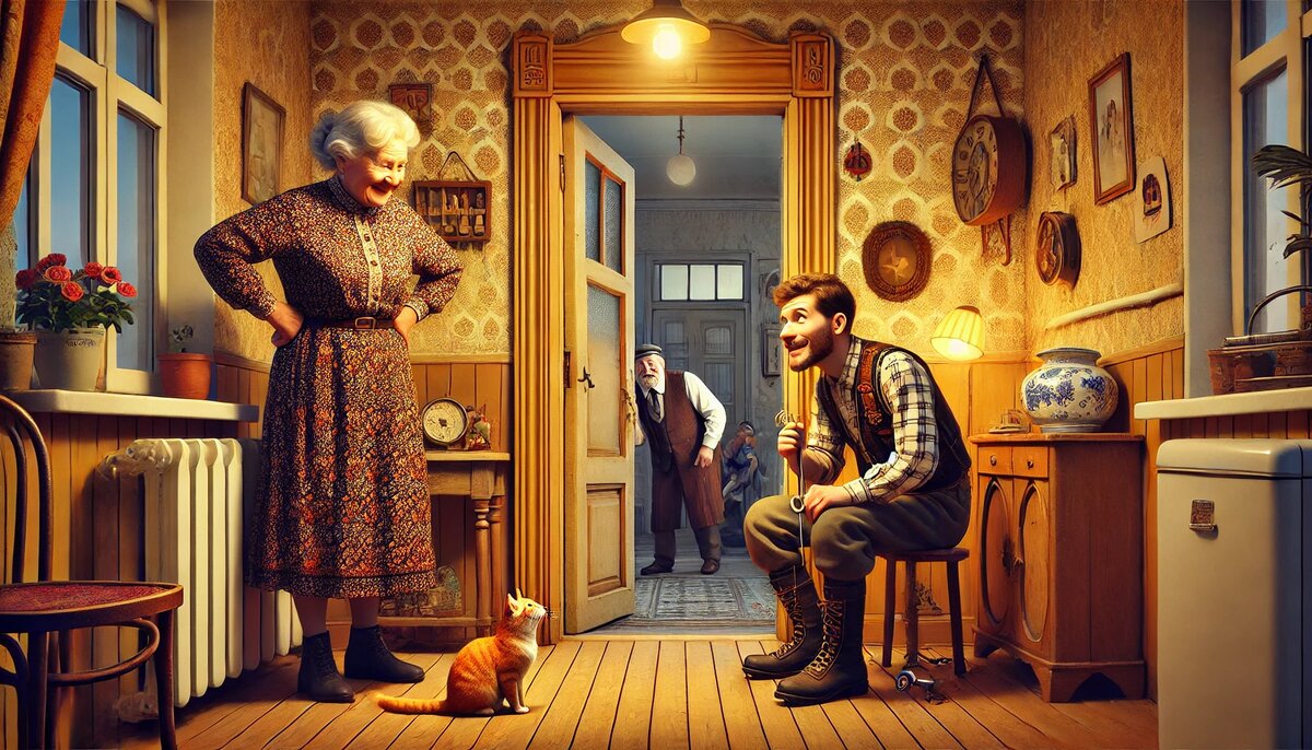 Дорогие мои, в коммуналке каждая мелочь – это целая эпопея. Однажды мы решили починить входную дверь. Казалось бы, что тут сложного? Но у нас всё превратилось в настоящую битву с непокорной конструкцией. Хотите услышать, как это было? Рассказываю! Наша входная дверь всегда была с характером. Её то переклинивало, то она скрипела, как старая бабушкина швейная машинка. А зимой вообще могла замёрзнуть так, что приходилось открывать её чайником с кипятком. – Галя, мы так долго не протянем. Надо чинить! – заявил Гриша, после того как в очередной раз застрял в проёме. – Гриша, ты же последний раз говорил то же самое, когда решил «подкрутить» шкаф. Он потом вообще сложился, как карточный домик! – возразила я. Но Гриша был непреклонен. Собрались всей коммуналкой. Люся принесла отвёртки, Гриша – молоток и какие-то подозрительные железки, а Валентина Петровна заявила, что будет следить за порядком. – Так, Гриша, не смей портить мою дверь! Я с ней ещё от войны живу, она многое видела, – строго пре
