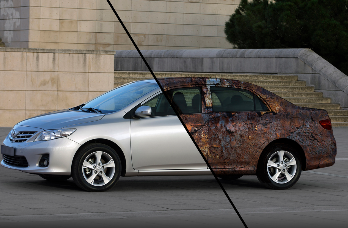 Подождать с ремонтом - хорошая идея? Разбираемся на примере. Что делать, если на кузове внезапно вылезла ржавчина? Срочно искать мастера по ремонту, закрасить по-быстрому, запшикать антикором или пустить все на самотек? Такие вопросы часто приходят в голову людям, которые впервые обнаружили рыжики на авто. Ответ один: ремонтировать! Но так ли нужно делать это прямо сейчас? Ведь автомобиль от пятна ржавчины ездить не перестанет. Предлагаем на примере посмотреть, что будет с машиной, владелец которой решил взять паузу в ремонте. Изначально ситуация выглядит не очень серьезной: повреждения есть, но кузов почти цел. Идея не спешить с ремонтом кажется привлекательной. Но коррозия - внутренний процесс разрушения металла. То, что появились внешние проявления в виде ржавчины - не мелочь, а красная сирена: “Внимание: процесс запущен!” Пока владелец смотрит на мелкие рыжики и успокаивает себя тем, что можно еще подождать, коррозия захватывает все больше территории. Как правило, пороги ржавеют вм