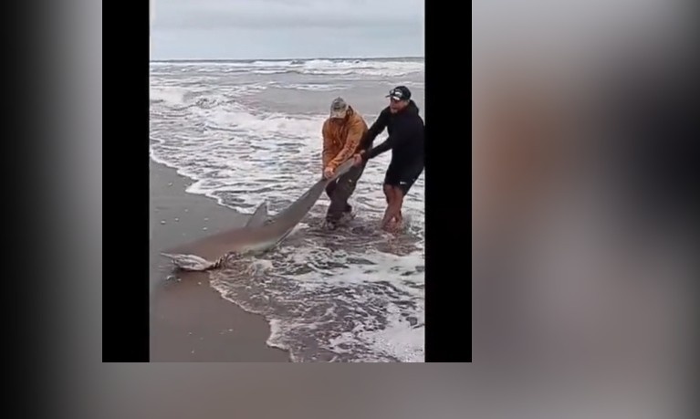 Аргентинский рыбак поймал гигантскую акулу весом 90 килограммов