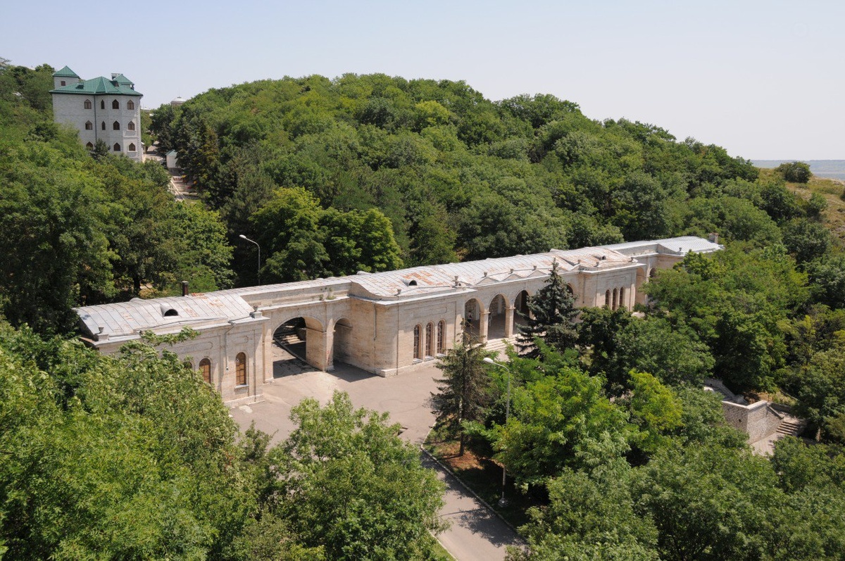 Михайловский отрог Машука и Горячую гору соединяет красивое арочное здание Академической галереи. С его широкой каменной площадки открывается великолепный вид на Пятигорск и Кавказские горы. Целебные свойства минерального источника на этом месте были известны ещё в древности, первые научные сведения о нём представил врач Фёдор Петрович Гааз в 1809 г., он же предложил назвать источник в честь супруги тогдашнего российского императора Елизаветы Алексеевны. В 1820-х годах здесь были сооружены каменный колодец, деревянный павильон для ванн, а также полотняная галерея, чтобы отдыхающие могли укрыться от непогоды и зноя. Елизаветинский источник стал важным центром Горячих Вод. Здесь любили проводить своё время «сливки» «водяного общества». Это нашло отражение и в русской классической литературе: именно здесь происходит завязка повести «Княжна Мери» романа М.Ю. Лермонтова «Герой нашего времени». Каменное здание галереи было сооружено в 1848-1850 гг. по указанию наместника Кавказского края М.С