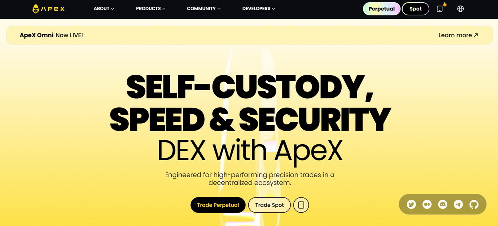 Официальный сайт DEX биржи APEX Protocol