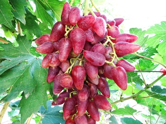 Чем больше – тем мельче! И наоборот. Собственно, вся суть – в эпиграфе. Чем больше наросло веток и побегов, тем они мельче – и тем мельче и кислее на них урожай. Значит, надо оставить минимум самых сильных плодовых веток – и урожай будет предельно крупным и вкусным. Для столового винограда это единственно верный закон. Здесь имеют смысл только вот такие грозди и ягоды: Но на замещение обрезается не только виноград. Примерно так же режутся персики: их плоды обязаны быть предельно крупными. Примерно так же омолаживаются старые и перегруженные ветки любых деревьев, так же ведутся ягодные и декоративные кустарники, дающие урожай на многолетних ветках. Сейчас покажу главный смысл, суть замещения. Начнём с самого наглядного – винограда. Термины такие: летом растут зелёные плодовые побеги, а к зиме они, одревеснев, стали годичными лозами. Плодовая ветка винограда – сильная годичная лоза в 8-10 почек, лежащая горизонтально – чтобы все её почки пробудились. Летом это уже «расчёска» мощных пло