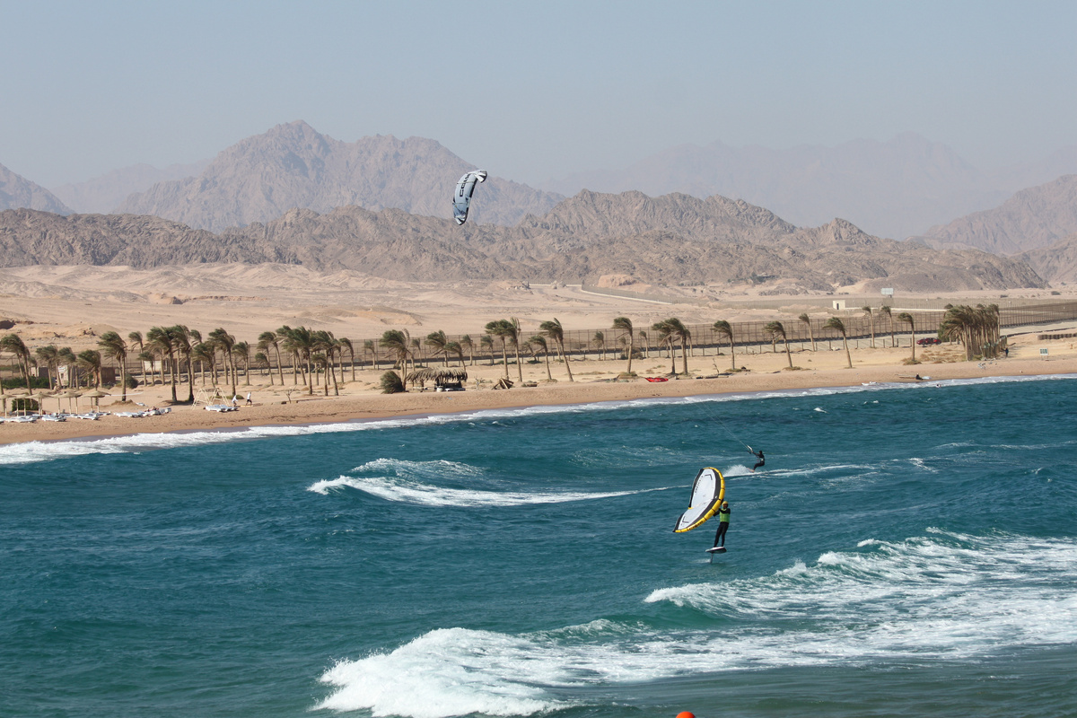 Иногда в Дахабе настолько сильно дует, что каталка некое составляющее борьбы за жизнь. А вот смогу в 18 метров? А в 20? То есть доказываем, что можем, но в такой ветер что либо крутить довольно опасно, а спас работы ох как не просты. Ну есть у нас 4-х метровый змей и даже 2.5 метра есть. Но они же детские! В такие дни лучше всего отправиться в Шарм Эль Шейх в район Набка. Ветер там всегда намного слабее чем в Дахабе. Если повезет, то вы попадаете почти на настоящий вэйв – с тремя лайн апами и двух метровыми длинными волнами, и с правильным направлением ветра. Спот находится почти на самой окраине Шарма. Большое преимущество – пляж общественный – никто никого не гоняет. Въезд свободный. Все чистенько, зонтики и лежаки далеко от воды. Вход в воду песчаный – никаких кораллов и больших камней. Ветер Sideonshore 10-12 метров. Волна до трех метров. Основная каталка в правой части бухты. Очень безопасно – никуда не унесет и не покалечит, так практически везде на дне песок. А вот мат. часть в