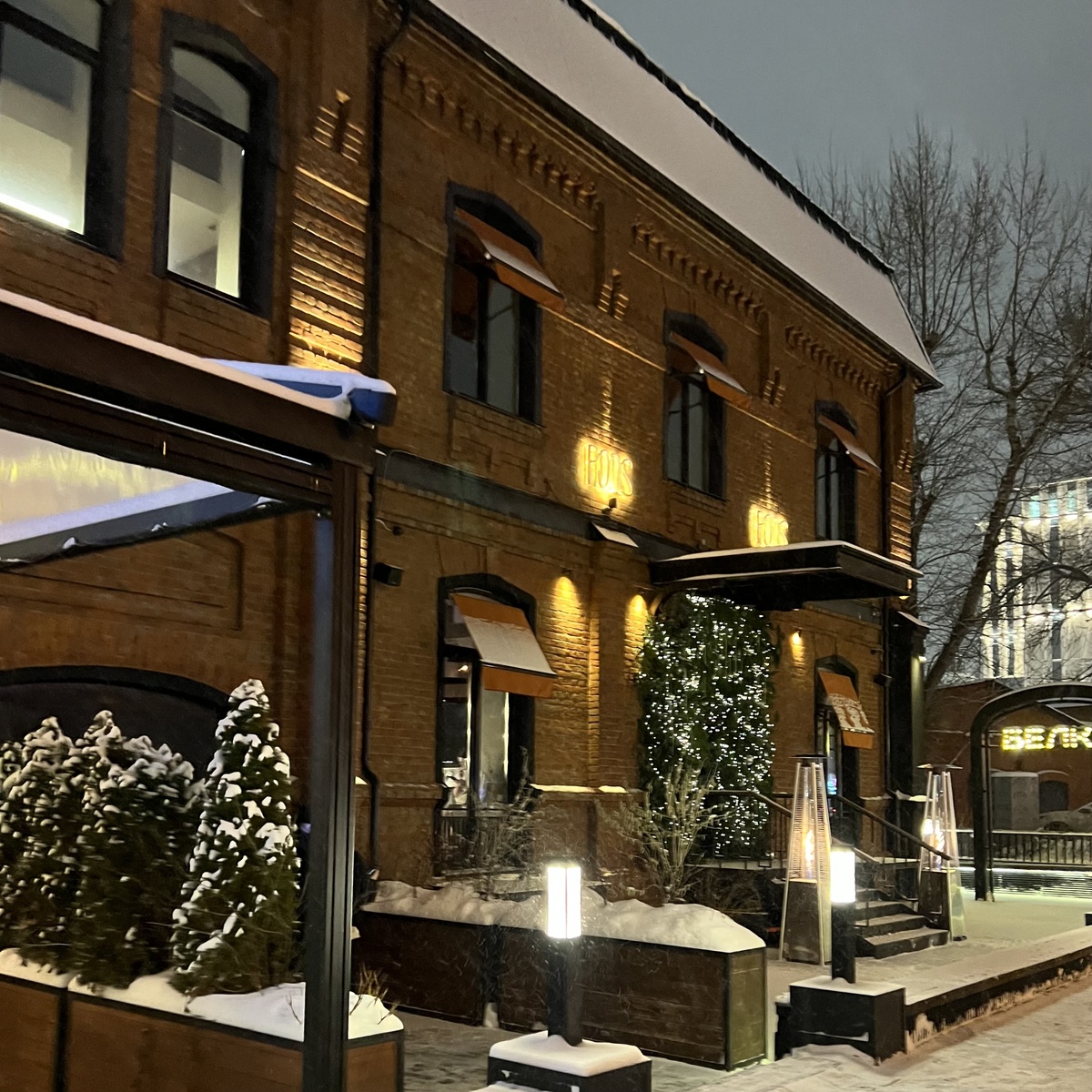 Оформление вроде современно-клубное, но ощущение, что попал в региональную историю где-то в 2012 году. Стены – кирпич разных цветов, потолок – черные железные листы, пол – гладкая серость. Среди декораций картины без определенного вида деятельности, кусты, елка, шторы тюлем и зелень по углам. Мебель тоже «модная», только сезон не 2024–2025, а все тот же 2011–2012. Столы – пластик разных размеров. Стулья – черно-серый велюр и кожзам в формах футуризма. Сидеть удобно, но вокруг сплошной диссонанс. Музыка громкая и шарашит из всех динамиков, будто танцпол забит, но, как я уже поведал, внутри никого. Освещение – темнота и немного точечного света на некоторые столы.