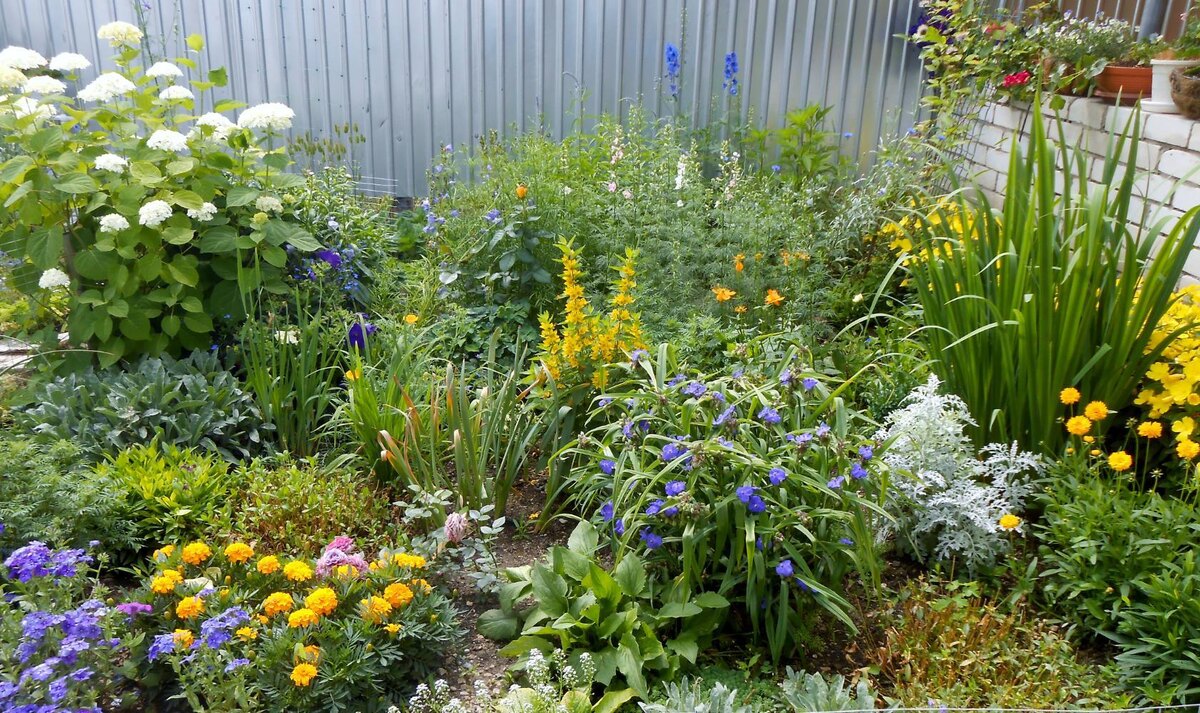 Что тут скажешь, зачатки вкуса явно уже были, идея яркая, сочетания на любителя, но не раздражающие. Этот цветник находится большую половину дня в тени дома и навеса, поэтому жёлтый не напрягает, а подсвечивает, но душа требовала чего-то новенького и не стало у меня сине-жёлтого цветника.