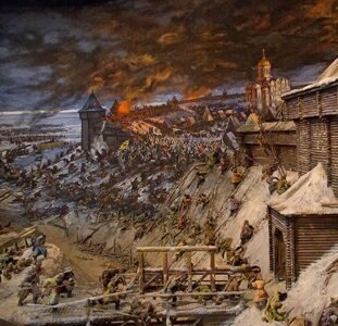 В начале XIII века Киев, уступивший столичные функции Владимиру на Клязьме, продолжал оставаться крупным духовным, административным и торговым центром юга Руси. В 1235 году Киевским князем становится Михаил Всеволодович Черниговский. После того как монгольские орды, разгромив Северо-Восточную Русь, ушли в половецкие степи, казалось, что Господь оградил Киевское княжество от жестоких завоевателей. Но так лишь казалось. Разгромив половцев, войска Батыя в 1239 году вернулись в русские пределы. Завоевав мордовские земли, Гороховец и Муром, они направились к Киеву. Под натиском превосходящих сил противника пали Чернигов и Переяславль Южный. В начале декабря, сломив отчаянное сопротивление киевлян, монголы ворвались в город, где несколько дней праздновали победу ужасами разрушения. Разгром Киева был настолько велик, что по словам очевидца в городе едва уцелело двести домов. Древний Киев исчез надолго.