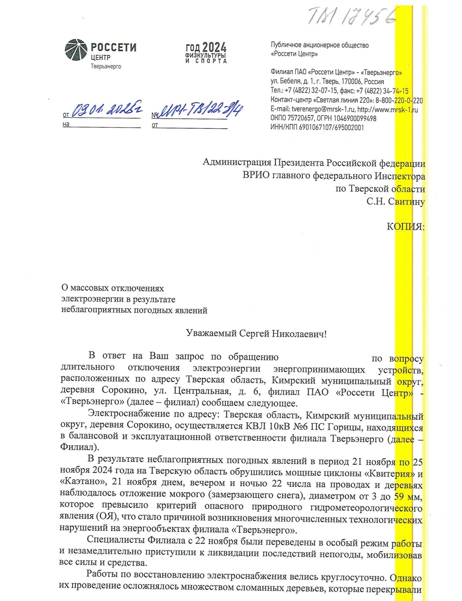 📆В ноябре 2024 года жители Тверской области столкнулись с почти двухнедельным отключением электричества, и причина, по мнению Россетей, кроется в «слишком низких тарифах» для населения! 💰 "Россети-Центр" - "Тверьэнерго" акцентируют внимание на тарифах, утверждая, что они не позволяют проводить необходимые работы по реконструкции электросетей. Но где же упоминание о десятках миллионов рублей, которые были украдены неизвестными сотрудниками компании? Эти средства должны были быть направлены на обслуживание и опилку в зонах ЛЭП, что могло предотвратить подобные ситуации! ❔Если тарифы действительно не покрывают расходы, какие меры принимает Россети для борьбы с воровством внутри компании? 🤦Подобные ответы, конечно, вызывают сомнения в способности руководства "Россетей" обеспечить надёжное и бесперебойное электроснабжение жителей Тверского региона, ставя под вопрос их компетентность.