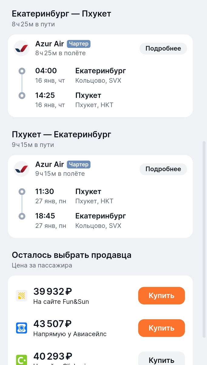 Подборка авиа билетов на январь 2025. Таиланд выгодно!