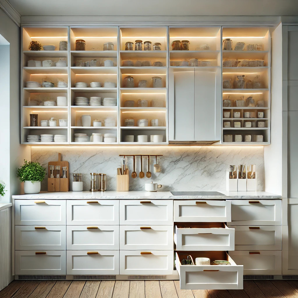 Кухня – это место, где функциональность и уют должны гармонично сочетаться. Правильная организация пространства на кухне не только делает процесс готовки удобным, но и помогает поддерживать порядок. Вот несколько советов, которые помогут вам оптимально обустроить кухонное пространство. 1. Зонирование пространства Каждая кухня должна быть разделена на зоны, соответствующие основным процессам: Хранение (продукты, посуда, бытовая техника). Подготовка (разделочные столы, поверхности для нарезки). Готовка (плита, духовка, микроволновая печь). Мытьё (раковина, посудомоечная машина). Такое разделение позволяет сделать кухонные процессы логичными и комфортными. 2. Рабочий треугольник Золотое правило любой кухни — рабочий треугольник: плита, холодильник и раковина должны располагаться на оптимальном расстоянии друг от друга. Это минимизирует перемещения и ускоряет работу. Расстояние между ними не должно быть слишком большим, но и теснота также недопустима. 3. Оптимизация систем хране