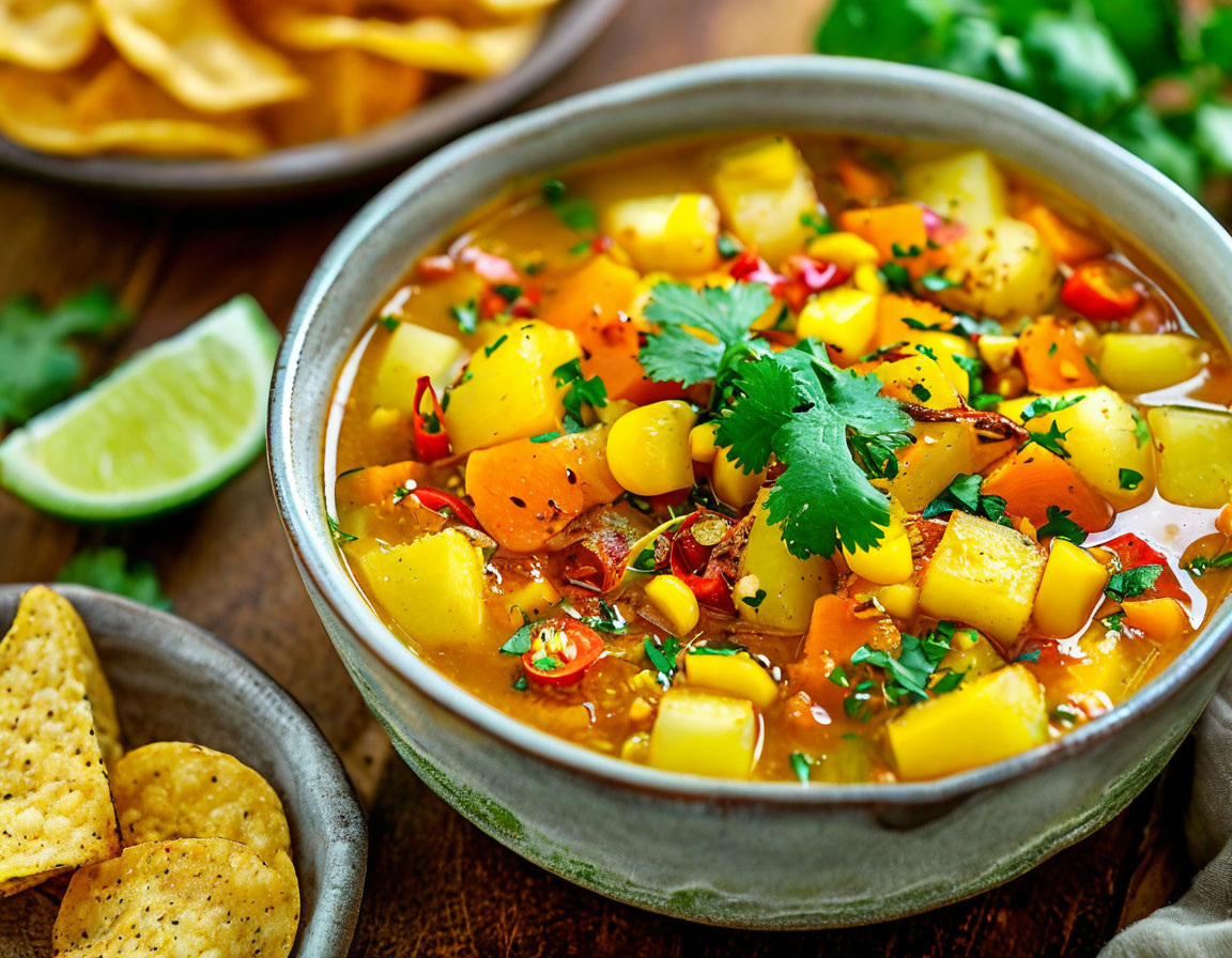 - Подача: подавайте суп горячим, посыпав свежей нарезанной кинзой. Для пикантности и текстуры можно добавить кукурузные чипсы или ломтики тортильи.