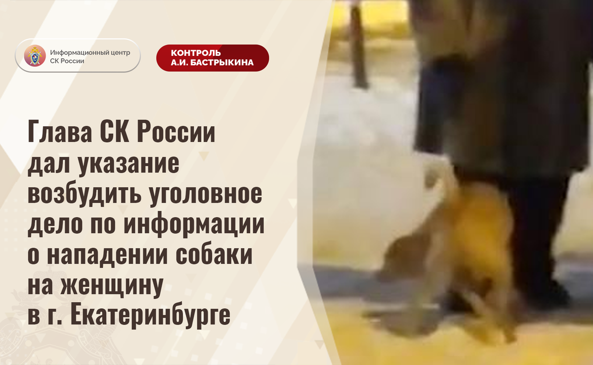 Глава СК России дал указание возбудить уголовное дело по информации о нападении собаки на женщину в г. Екатеринбурге В СМИ сообщается, что 11 января текущего года в городе Екатеринбурге собака, находившаяся на выгуле без поводка и намордника во дворе многоквартирного дома на улице Викулова, напала на 30-летнюю женщину, укусив ее. Пострадавшая получила многочисленные травмы, ей потребовалась медицинская помощь. Отмечается, что в момент происшествия владелица собаки находилась рядом, однако мер реагирования не принимала. Председатель Следственного комитета Российской Федерации Александр Иванович Бастрыкин дал указание и.о. руководителя СУ СК России по Свердловской области Константину Владимировичу Мирошниченко возбудить уголовное дело и представить доклад о ходе и результатах его расследования. Исполнение поручения поставлено на контроль в центральном аппарате ведомства. #СледственныйКомитет #СКРоссии #СКР #ИЦСКР #ИнформационныйЦентр #АлександрБастрыкин #ПредседательСКР #КонтрольПредседа