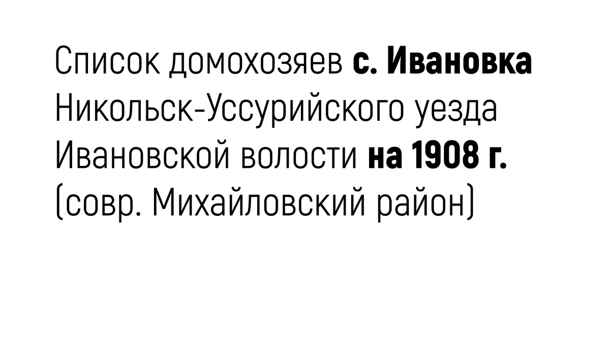 Список жителей села Ивановка Никольск-Уссурийского уезда Ивановской волости (неполный) указан в подписантах к документу «Приговор сельского схода с. Ивановки о расширении училища» от 16 ноября 1908 г. Сидор Должиков,