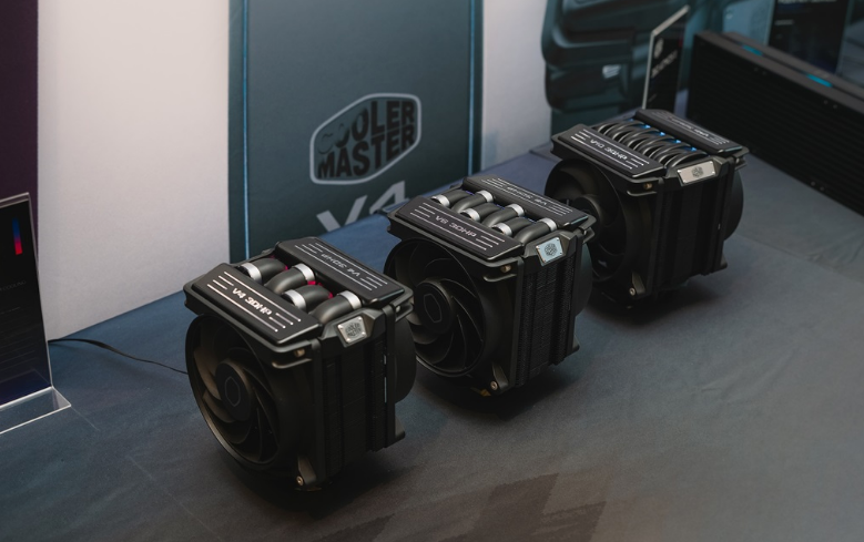 13 января 2025 года Cooler Master выпустила новую серию процессорных кулеров, серии которой присвоена литера V. Эти устройства обещают не только эффективное рассеивание тепла, но и стильный внешний вид, который напоминает о мощных автомобилях. Серия V включает в себя четыре модели: V4, V6, V8 и V10, каждая из которых разработана с учетом особенностей дизайна V-образных двигателей. Главное преимущество этих кулеров — запатентованная технология 3D Heat Pipe (3DHP). Она обеспечивает размещение центральной тепловой трубки прямо над процессором, что значительно улучшает эффективность охлаждения. Это позволяет использовать меньшее количество тепловых трубок по сравнению с аналогичными решениями на рынке. Модели V8 и V10 выделяются двухбашенной конструкцией, что увеличивает их способность рассеивания тепла при высоких нагрузках. Вентиляторы, работающие на двойных шарикоподшипниках, минимизируют трение и шум, что, в свою очередь, продлевает срок службы устройства и снижает энергопотребление. Э