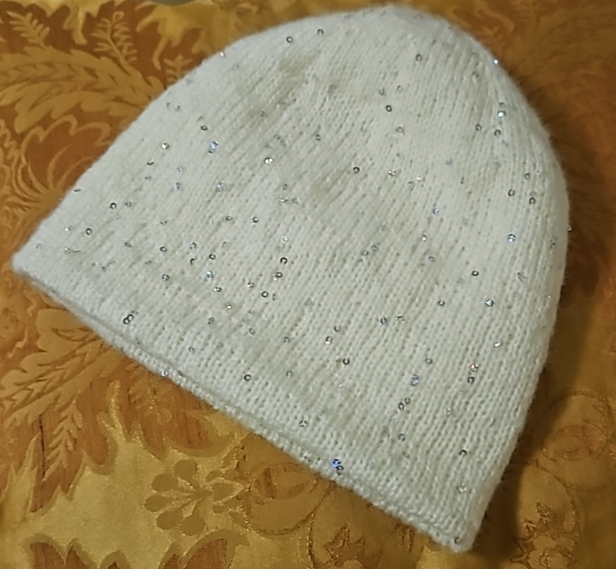 Я наконец-то, закончила шапочку. Двусторонняя двойная. С пайетками одна сторона, другая просто белая. Осталось провести ВТО. И можно дарить или продавать. Это моё четвёртое готовое изделие за первый месяц нового года. Но месяц пока не закончился и, я точно знаю, свяжу ещё чего нибудь. Интересно, сколько готовых изделий у меня получится связать за январь 2025, с учётом моего пребывания в санатории?! Как вы думаете?