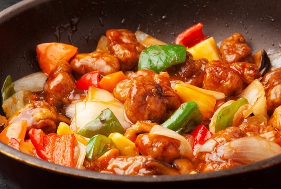 Для приготовления возьмите 400 г свинины, 2 ст. л. соевого соуса, столько же муки, яйцо, три зубчика чеснока, луковицу, болгарский перец, по 4 ст. л. воды, сахара и винного уксуса.