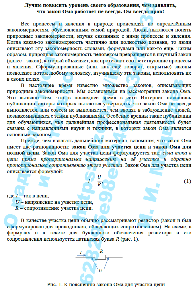 Лучше повысить уровень своего образования, чем заявлять, что закон Ома работает не всегда. Ом всегда прав!