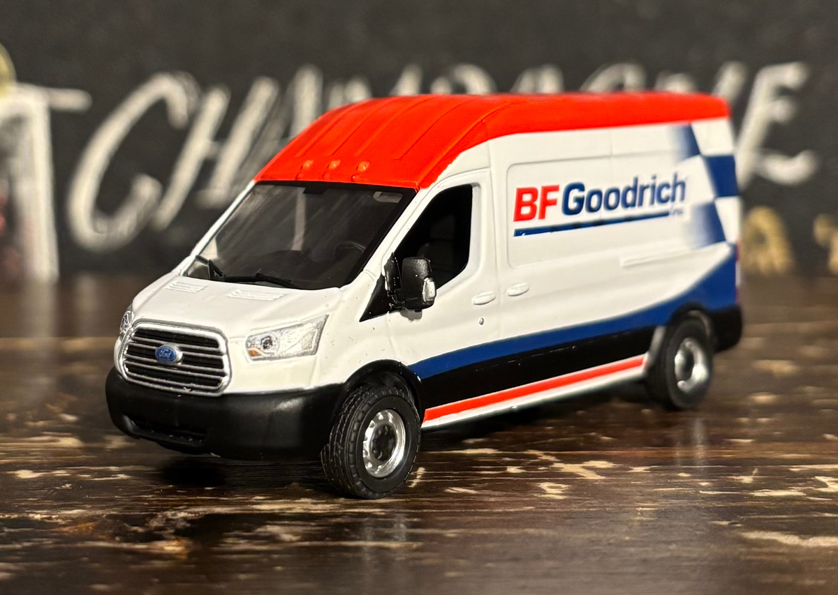 Приветствую, дорогой читатель! Сегодня на обзоре у нас легендарный в определенных кругах автомобиль. Прошу любить и жаловать Ford Transit LWB High Roof BFGoodrich 2017 от GreenLight в масштабе 1:64. Давайте же начнем обзор на данный фургончик, но сначала немного истории про него и про фирму BFGoodrich.