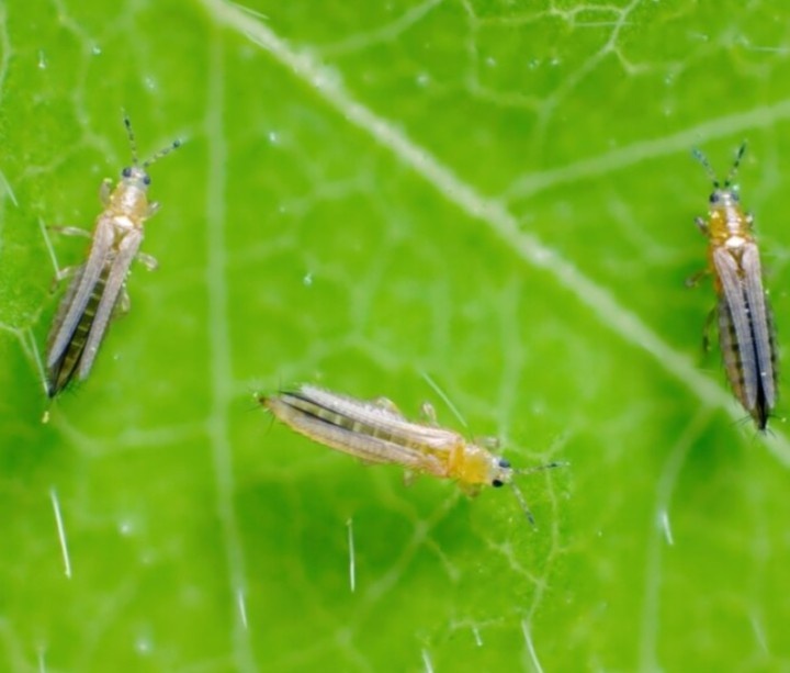Что такое трипсы? Трипсы (Thysanoptera) – это отряд насекомых, который включает в себя более 2000 видов, из которых около 300 видов встречаются в России. Эти мелкие насекомые имеют длину от 1 до 2 мм и тонкое, часто вытянутое тело. Их окраска может варьироваться от светло-желтой до черной, а многие виды имеют характерные длинные перепончатые крылья. Как выглядят трипсы? Трипсы имеют грушевидную форму тела и очень мелкие размеры, что делает их трудновидимыми для глаза. На крыльях могут быть волоски, которые придают им характерный вид. Часто их можно заметить, если внимательно осмотреть нижнюю сторону листьев и цветоносы растений. Как трипсы вредят растени ям?Повреждение тканей: Трипсы питаются, вонзая свои хоботки в ткани растения и высасывая соки. Это приводит к образованию серебристых или белых пятен на листьях, которые могут со временем высыхать и изменять цвет. Передача вирусов: Многие трипсы являются переносчиками вирусных заболеваний, которые могут могут со временем высыхать