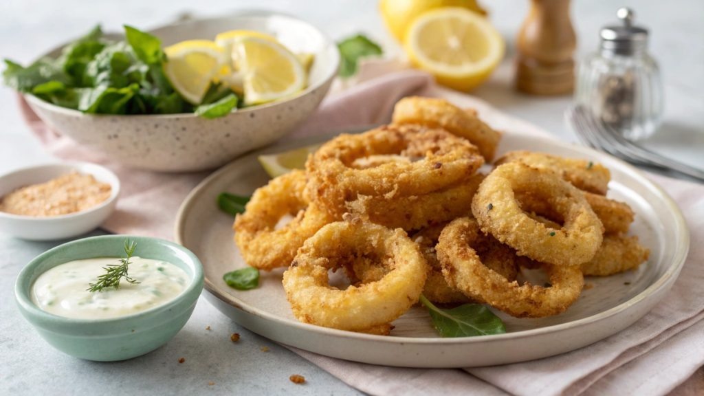 Кальмары во фритюре — это потрясающее блюдо, которое идеально подойдет как для уютного семейного ужина, так и для праздничного стола. Хрустящие, золотистые и ароматные кальмары порадуют ваших гостей и добавят изысканности в любое застолье. Это блюдо очень популярно в различных кухнях мира и может служить отличной закуской или основным блюдом. Не упустите возможность попробовать этот деликатес! Попробуйте добавить различные специи в мучную смесь — например, паприку или чеснок. Это придаст блюду дополнительные ароматы и вкусовые оттенки.Если хотите сделать блюдо более диетическим, можете заменить фритюр на запекание в духовке. Рецепт рассчитан на 3-4 порции. Чтобы кальмары получились нежными и хрустящими, следуйте этим шагам: Совет: избегайте замороженных кальмаров низкого качества, так как они могут стать «резиновыми» при жарке. Хрустящая панировка — ключ к вкусным кальмарам. Вот несколько вариантов: Совет: если хотите ещё более хрустящую корочку, добавьте в панировку щепотку разрыхлите