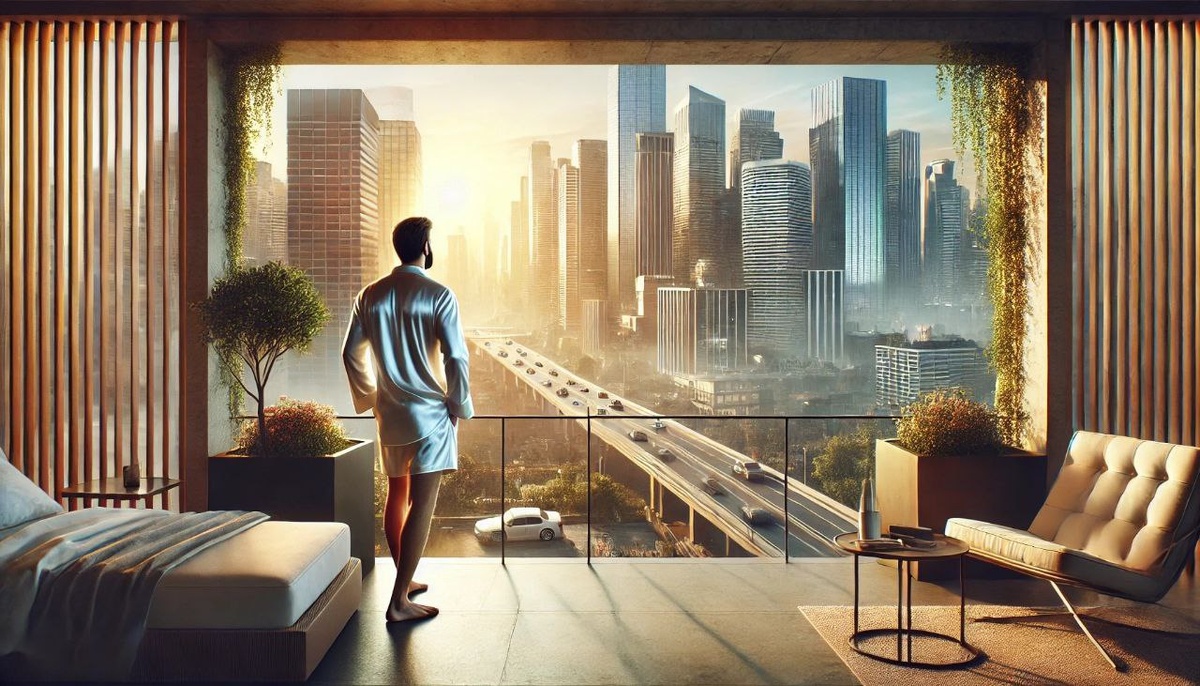 "Зачем многие люди тратят время и жизнь, сгорая и выгорая, тобы купить сравнительно небольшое жилье в элитном доме. Ведь потом вдруг оказывается, что дом стоит посреди дерьма, и ты со своего балкона, попивая из золотой чашки ароматный кофе, любуешься этим дерьмом. Когда можно напрягаться намного меньше или вообще не напрягаться, жить внутри этого дерьма, приведенного тобой в порядок, чтобы пить кофе на балконе с видом на красоту и роскошь." Я очень удивился, конечно, что мог реально тогда подмечать такие вещи. И это действительно может быть рабочим для определенного периода существования.