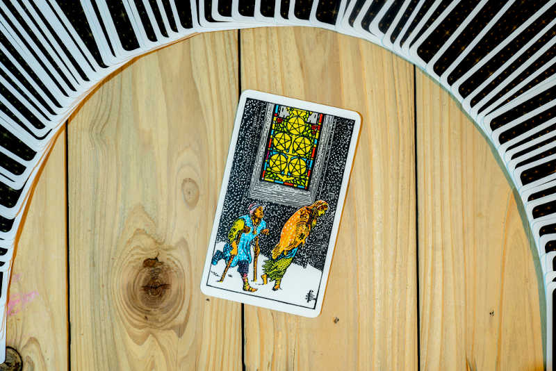 В колоде Райдера–Уэйта (Rider-Waite-Smith) карта Пятёрка пентаклей изображает сцену крайней нужды. Пара, одетая в лохмотья, бредёт по снегу.