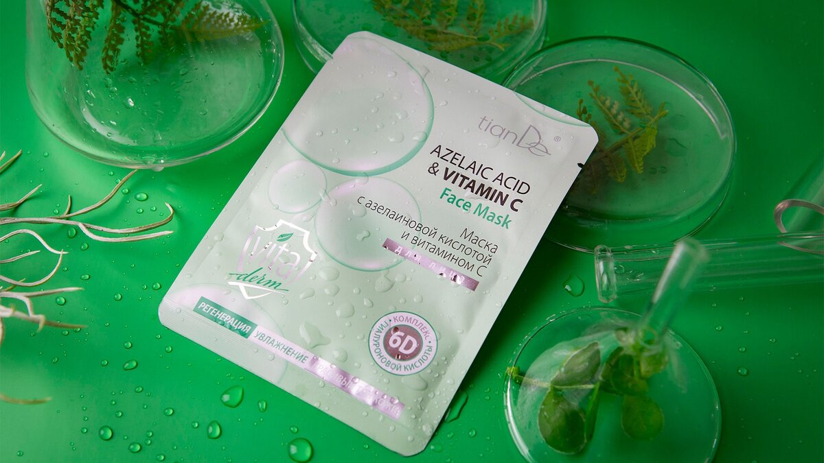 На школьных уроках химии мы узнали, что кислота – штука вредная: попадет на кожу – будет ожог. Подросли – открыли для себя, что кислоты не всегда враги, и что для проблемной, жирной и пигментированной кожи они могут стать настоящим спасением. Те, кого природа одарила кожей сухой и раздраженной, обнаружили, что борется с этим тоже кислота – гиалуроновая. И так все время: кислоты то и дело преподносят сюрпризы, открываясь новыми гранями способностей, возможностей и перспектив. Вот и новинка в коллекции VitaDerm от TianDe тоже с кислотами, которые вопреки школьным стереотипам кожу успокаивают. Супермаска-муляж с азелаиновой кислотой и витамином С призвана в кратчайший срок совершить сразу несколько подвигов: сократить внешние несовершенства и постакне, при этом снизить все проявления чувствительности кожи и восстановить ее микробиом. Когда новинка будет кстати? Как раз тогда, когда мы, перепробовав кучу средств от проблем на лице, получили не ровную и сияющую красотой, а покрасневшую, раз