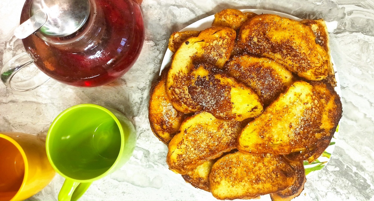 Сладкие гренки - невероятно вкусное блюдо: они покрыты сахарной хрустящей корочкой, а внутри нежные и молочные. Но еще они - ностальгия, возвращающая в беззаботное детство. Мама готовила их на завтрак, или к чаю. Аромат свежеприготовленных гренок заполнял дом, и мы собирались за столом. Теперь я готовлю их своим детям. А рецепт предлагаю попробовать и вам. Ингредиенты: Приготовление гренок не занимает много времени и достаточно простое. 1. Берем батон 🍞 и нарезаем его ломтиками. Они должны быть не слишком толстыми, чтобы успели пропечься внутри, и не слишком тонкими, чтобы не развалились - примерно 1-1,5 см толщиной. И оставляем. Батон в идеале должен быть подсохшим. Когда у меня есть время, я выкладываю его на стол примерно за час до начала приготовления, или беру вчерашний. Со свежим - гренки получаются размякшими. Но тут уж каждый делает по своему вкусу. 2. Молочная пропитка. В глубокую тарелку вливаем молоко, к которому добавляем ложку сахара, яйцо 🥚 и ванилин. Хорошо р