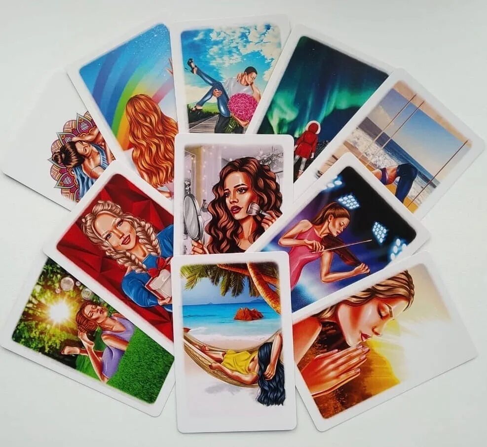 Используя метафорические карты самостоятельно, важно сверяться со своими ощущениями. Если в процессе работы вы чувствуете, что ассоциации уводят вас в болезненный опыт, заставляют переживать травмирующие события или вызывают негативные эмоции, лучше остановиться, поскольку справиться с подобным без поддержки специалиста может быть сложно. Для работы с МАК сначала нужно выбрать колоду. Бумажные версии МАК есть в книжных магазинах и на маркетплейсах. А так же есть приложения с МАК. Лично мне нравятся карты в бумажном варианте. На маркетплейсах можно приобрести их от 200 ₽. Выберите наиболее комфортный способ применения карт. Здесь также подходят как открытый, так и закрытый варианты. Их можно чередовать — оба бывают полезны в разных ситуациях. Вытягивать карты можно столько раз, сколько необходимо. Теперь нужно сформулировать запрос. Важно, чтобы он касался именно вас. Помните, что МАК — способ заглянуть внутрь себя и разобраться в своих мыслях через метафоры. Например, вместо «Почем
