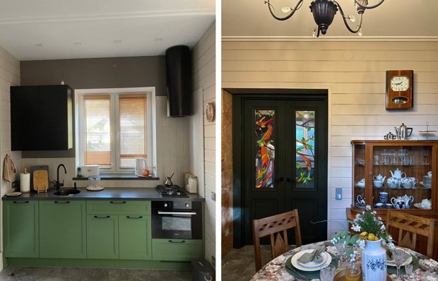 Дизайн: Эльвира Станкевич Дом из силикатного кирпича спроектировал и построил папа Эльвиры в 1990-м году. Родители использовали его как летнюю дачу: здесь не было ни воды, ни отопления, ни канализации. Требовалось сохранить конструктив, утеплить дом снаружи и изнутри, подвести воду, газ, сделать отопление и полностью заменить электрику. Для наружной отделки использовали имитацию бруса. На крыльце пристроили утепленный тамбур, который выполняет роль прихожей. На первом этаже расположены лестничный холл, отде