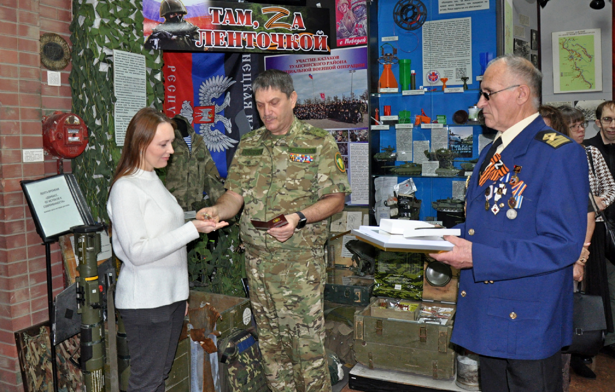 В преддверии Нового года в стенах музея состоялось чествование волонтёрских организаций, оказывающих помощь бойцам и мирному населению "за ленточкой". ⭐Грамоты волонтёрам вручал председатель Автономной некоммерческой благотворительной организации "Русский ветеран-доброволец" Юрий Анатольевич Иванов. Не случайно выбрано наше учреждение, где уже больше года представлена экспозиция, посвященная СВО. 🏅Среди награжденных туапсинцев и ОСВОДовцы - супруги Александр и Татьяна Терещенко, благодаря которым выставка "Там, за ленточкой..." регулярно пополняется новыми экспонатами (🤝благодарим, друзья 🙏 ) 📢 Наградным знаком общества и грамотами за вклад в музейное дело и сохранение историко-культурного наследия, национальных ценностей, воспитание гражданственности и патриотизма, пробуждение интереса подрастающего поколения к историческому прошлому родного края награждён и коллектив нашего музея. Шеврон с символикой АНБО теперь пополнил коллекцию предметов, посвященных СВО. В предд