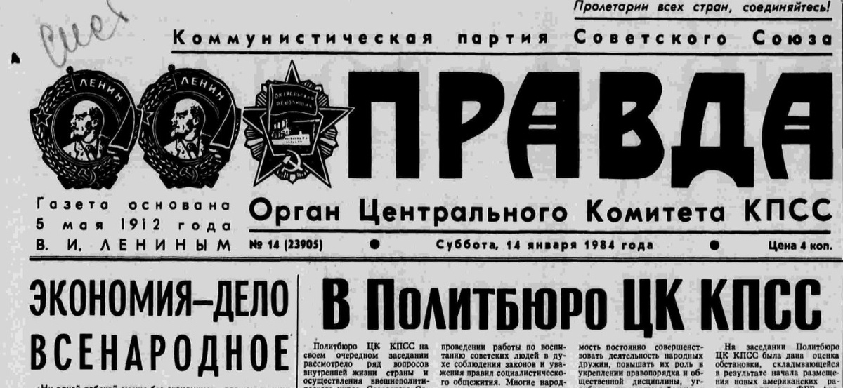 Теперь рассмотрим обе телепрограммы более подробно, а я напомню, что день 14 января 1984 года был суббота. А в субботний день по телевизору обычно бывает много интересного.
