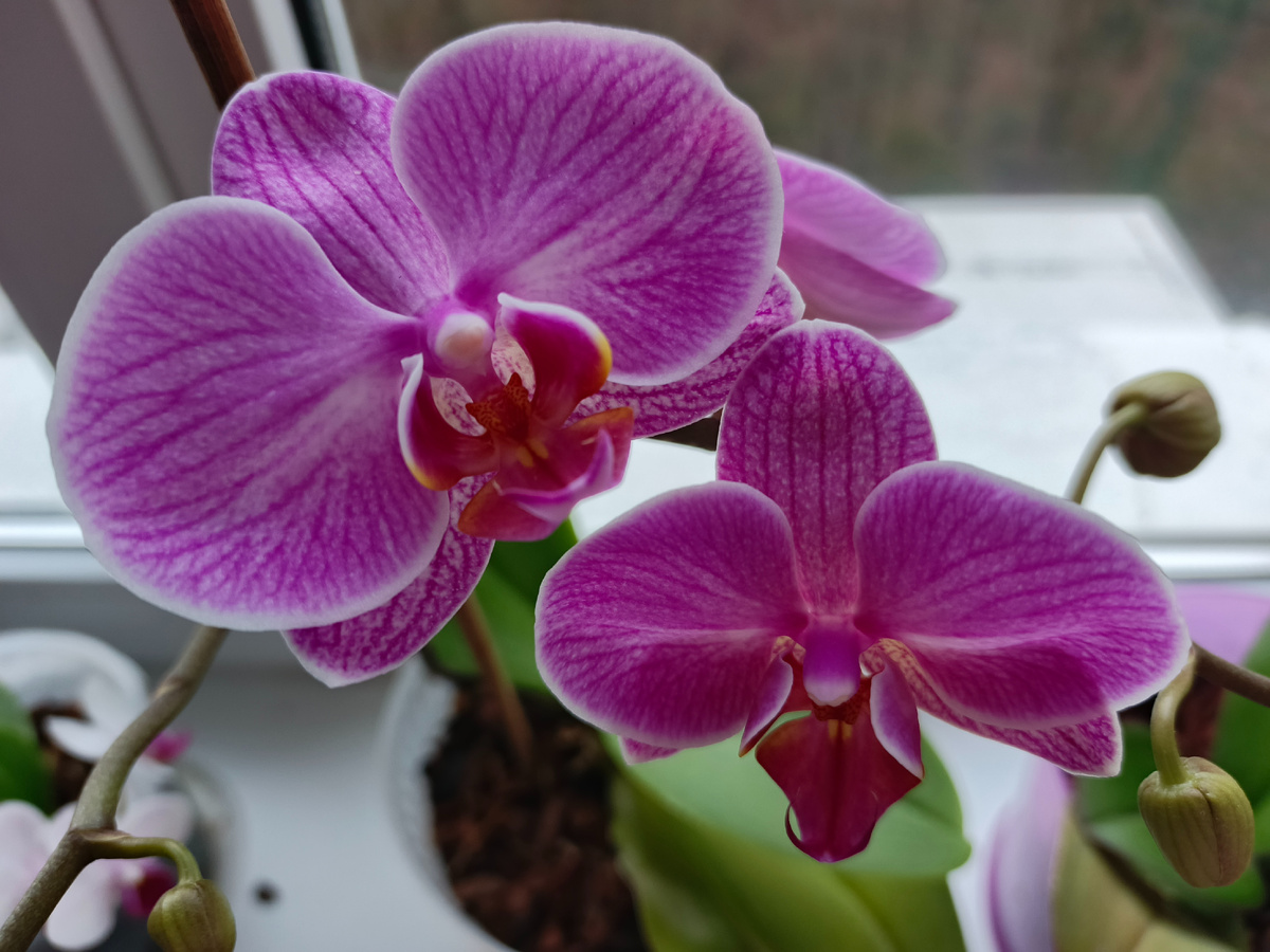 Всем доброе утро! Погода у нас испортилась. Со вчерашнего вечера идет дождь, небо серое, температура +10 градусов. Но мы не унываем, у меня зацвели очередные две орхидеи эти прекрасные создания как лучики солнца в хмурую погоду. Всегда вызывают улыбку Найдите и Вы повод для радости - и воспользуйтесь им, чтобы день не прошел понапрасну. Будьте счастливы!