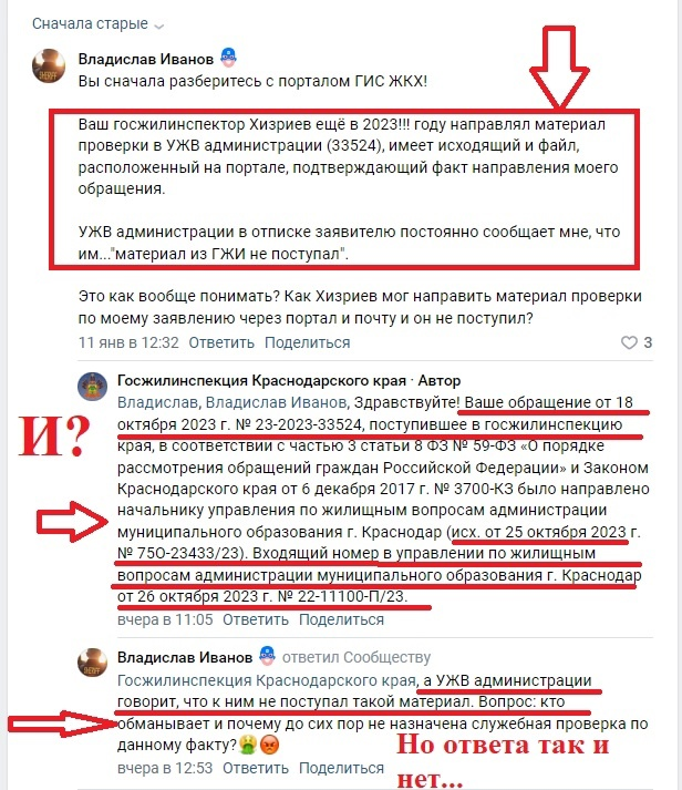 13 января 2024 г. я залез в официальную группу Госжилинспекции Краснодарского края (Прошу оставить там свои комментарии. Чем больше, тем лучше) и оставил такой вопрос:
