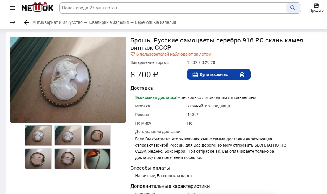 На продажу выставлено то, что осталось от броши, дана информация - в ремонт.