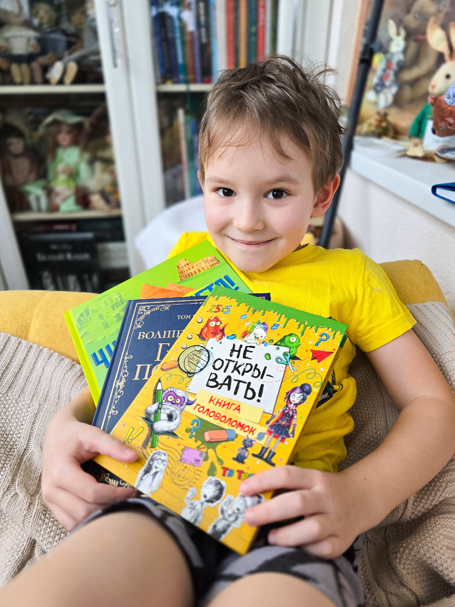 1. "Не открывать! Книга головоломок" Если ваш ребенок любит разгадывать головоломки, то эта книга точно должна понравится! В ней собраны 100 самых разных заданий, от лабиринтов и игр со словами до тестов и рисовалок, которые могут разгадать только настоящие поклонники умственных испытаний. Но это ещё не всё! Каждый раздел оформлен яркими иллюстрациями, а ещё в книге есть вырезные таблички для двери, самодельная коробочка и даже шаблон для расписания уроков. Все эти элементы сделают процесс разгадки ещё более увлекательным. Эта книга будет отличным подарком для любителей головоломок, а также для тех, кто ищет нестандартные способы провести время. 2. "Волшебный мир Гарри Поттера. 250 магических фактов, которые должен знать каждый фанат" Каждый фанат вселенной Гарри Поттера знает, что волшебство кроется не только в магических приключениях, но и в невероятных фактах о героях, мире и процессе создания фильма. В этой книге собрано 250 удивительных фактов, которые точно удивят даже самых оп