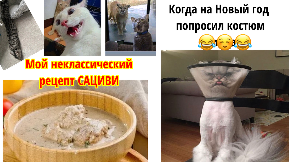 Юмор и шутки, весёлые 😂картинки (мемы с котиками) для позитива❗️ как я делаю сациви (не классический рецепт, но очень вкусно)