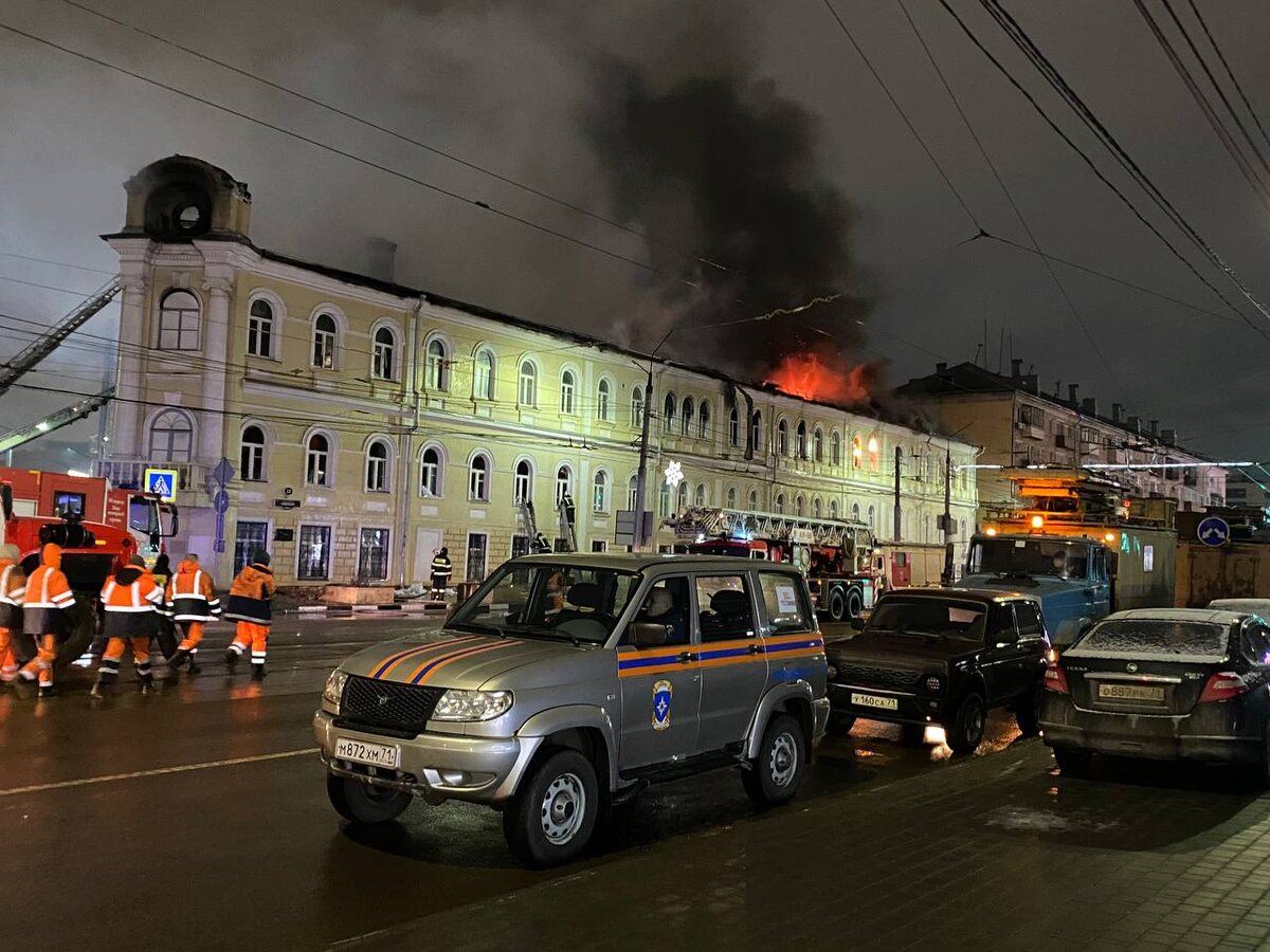 «Тушение пожара осложняется конструктивными особенностями здания: в строении деревянные перекрытия и перегородки с пустотами», – сообщил губернатор Дмитрий Миляев.
