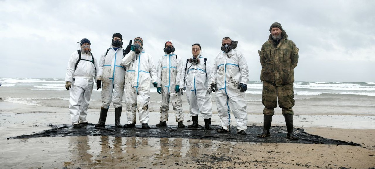 Владимир Каляев, руководитель группы проектов развития Центра коллективного пользования «Фаблаб и мастерская», приехал на Черноморское побережье Анапы за несколько дней до нового года, чтобы помочь очистить пляжи от загрязнения мазутом. Каждый день он работает руками и проводит эксперименты по отсеиванию сухой фракции на пляже и улавливанию мокрой фракции с прибрежной зоны. Сейчас его команда готовится к испытанию по задержанию мазутных частичек в толще воды. Для решения этой задачи Владимир занялся поиском дешёвых материалов, которые производятся в промышленном масштабе и которые можно купить практически в любом хозяйственном магазине. Времени на развёртывание специального производства подручных материалов для сбора мазута просто нет. Команда учёного из Сколтеха поняла, что, если расстелить заводские полиэтиленовые/полипропиленовые сети, которые в основном используются для укрытия от солнца, в зоне активного движения воды и подождать, пока энергия волны сделает свою работу, или проеха