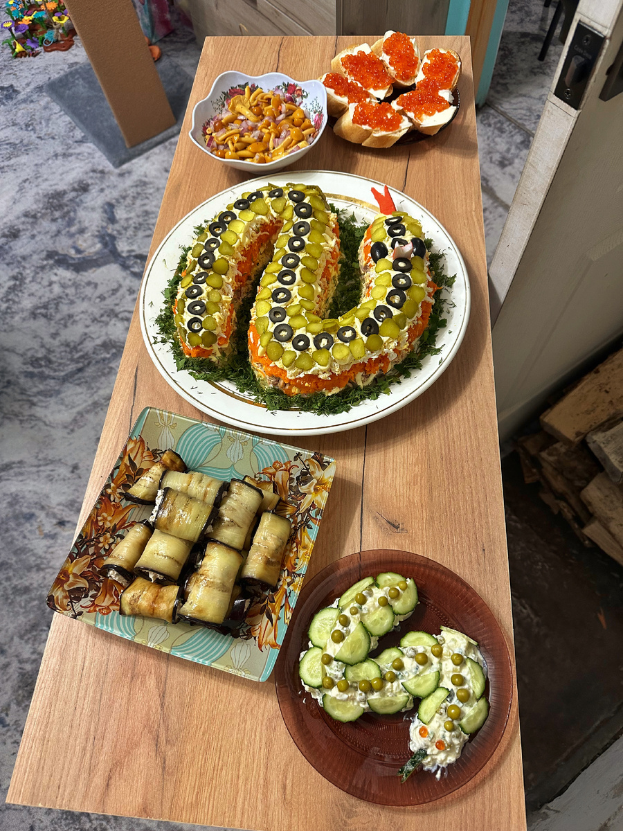 Подведу итоги, чем мы питались в праздники и как я планирую питаться дальше. Свои замеры оставлю в конце статьи⬇️ Я имею ввиду не все новогодние каникулы, а именно праздничные дни. У нас нет привычки начать гулять 31 декабря, а проснуться только к 9 января. Вечером перед Новым годом у нас был праздничный ужин: рыбный салат с легким майонезом (соусом) в виде змеи, рулетики из баклажан, бутерброды с икрой, маринованные грибы и нарезки. Под бой курантов была закуска в виде рулетов в лаваше. На Рождество был холодец, салат столичный, разные нарезки. Кстати, Алина холодец мой оценила и немного поела, только в обморок не падайте от этого, она и шашлык за милую душу уплетает. Ну и на Старый Новый год, был шашлык из свиной шеи и куриных бедер, к ним лечо и квашеная капуста. Отварила рис для дочки и тех, кому голодно. В принципе, как до праздников и в обычные дни. На завтрак у нас бутерброды из черного хлеба с домашним паштетом из печени, овощи/яйцо/йогурт. Или может быть омлет/яичница с овощ