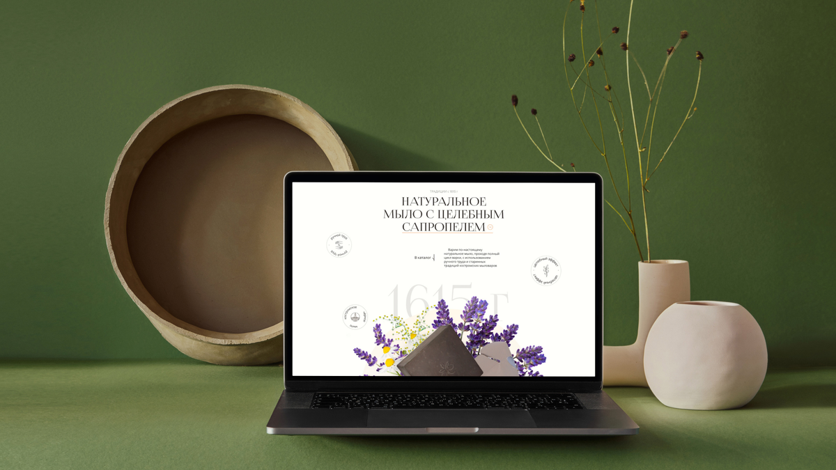 Мы разработали сайт для Костромской мыловаренной мануфактуры, которая создает уникальное натуральное мыло из сапропеля. Этот проект объединил глубокую историю мыловарения, ремесленные традиции и современные технологии. Задача проекта заключалась в том, чтобы не только презентовать мыло как продукт, но и показать его уникальные свойства, обусловленные использованием сапропеля — целебного природного ингредиента. Важно было акцентировать внимание на ручном подходе к производству, экологичности компонентов и традициях костромского ремесла. Сайт должен был стать удобным инструментом для клиентов, предоставляя им всю необходимую информацию о компании и ее продукции. Дизайн сайта был создан с целью передать натуральность, чистоту и традиции. Мягкие природные оттенки и растительные мотивы создают визуальную связь с экологичностью продукции. Все элементы сайта работают на то, чтобы подчеркнуть спокойствие, доверие и аутентичность бренда. Главная страница сайта — самая насыщенная и информативная