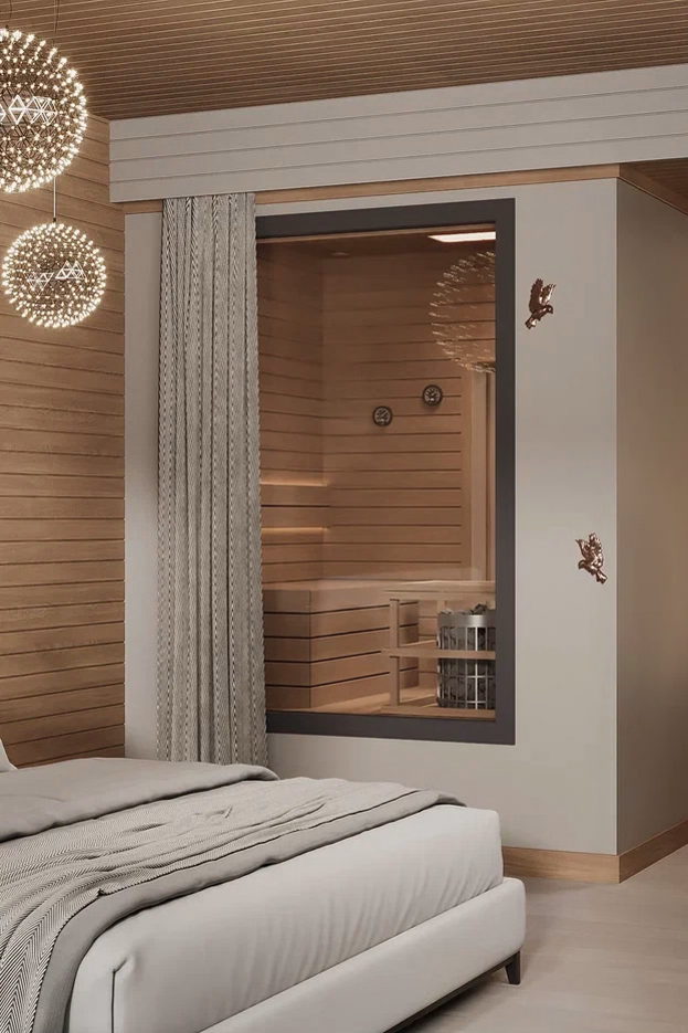 Сауна давно перестала быть исключительно функциональным помещением. В сегодняшних реалиях это место, где можно не только отдохнуть, но и насладиться эстетикой окружающего пространства. Одной из новейших тенденций в оформлении сауны является использование панорамных окон. Рассмотрим атмосферность панорамных окон, а также, как светлое дерево, использованное в отделке, влияет на создание уюта. Сауна с панорамным окном в спальню — это идеальное решение для тех, кто стремится объединить функциональность и эстетическое наслаждение. Просторное помещение, обшитое натуральным деревом, создает атмосферу уюта и тепла. Большое стеклянное окно позволит насладиться прекрасным видом. Эта уникальная сауна не только обеспечивает прекрасный способ расслабления после трудного дня, но и становится оригинальным элементом интерьера. Свет, проникающий через панорамное окно, наполняет пространство и создает игривые блики, играющие на стенах. Сочетание естественного света и тепла парной способствует гармонии,