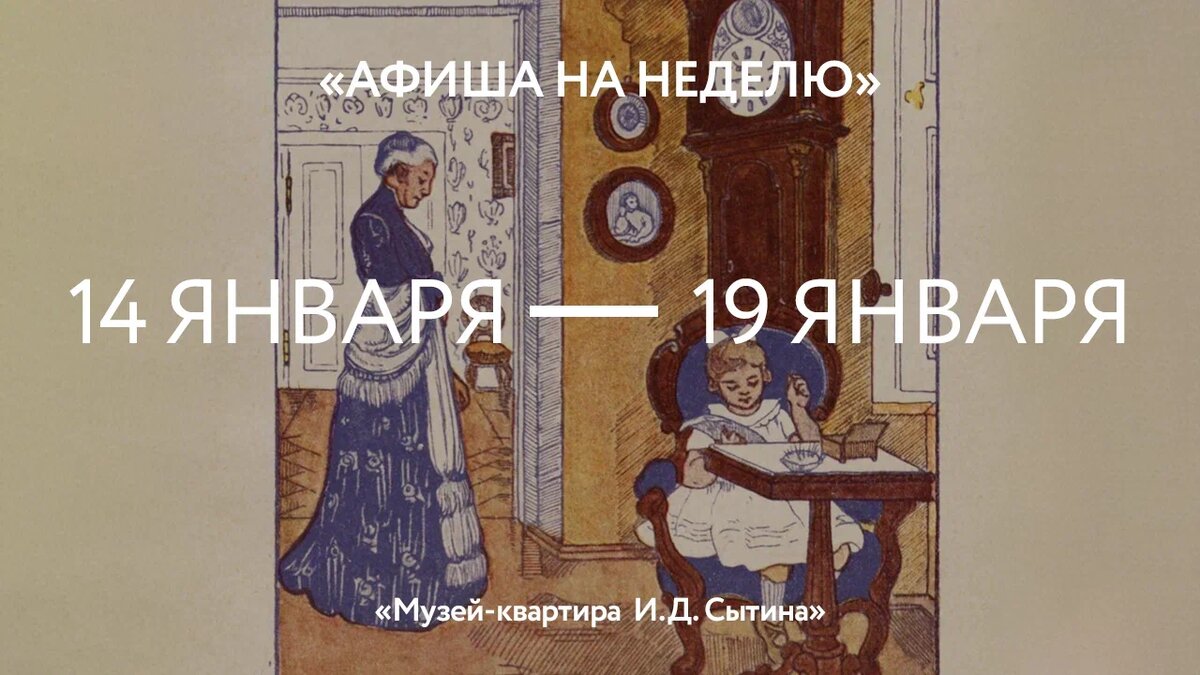 18 января в 13:00. Экскурсия-квест «Иван Сытин, Джеки Чан и Сигурни Уивер. Экранизации книг, изданных И.Д. Сытиным» Купить билет Это интерактивная прогулка по музею-квартире русского книгоиздателя И.Д. Сытина, которая объединяет классическую экскурсию с заданиями на внимательность, логику и эрудицию. Участники смогут в подробностях узнать о жизненном пути И.Д. Сытина в стенах его квартиры и познакомиться с личными вещами издателя, представленными в собрании музея. Квест рассчитан на учащихся старших классов и взрослых. Лектор: Шаламов А.Ю. 19 январяв 16:00.Сборная экскурсия «Жизнь для книги» Купить билет. Экскурсия познакомит гостей с жизнью крупнейшего в дореволюционной России книгоиздателя Ивана Сытина, который сумел стать одним из самых просвещенных людей конца XX — начала XIX века. В квартире, где он жил в 1928–1934 годы, теперь развернута музейная экспозиция. Здесь представлены документы из семейного архива и личные вещи Ивана Сытина: мебель, предметы домашнего обихода, произведе
